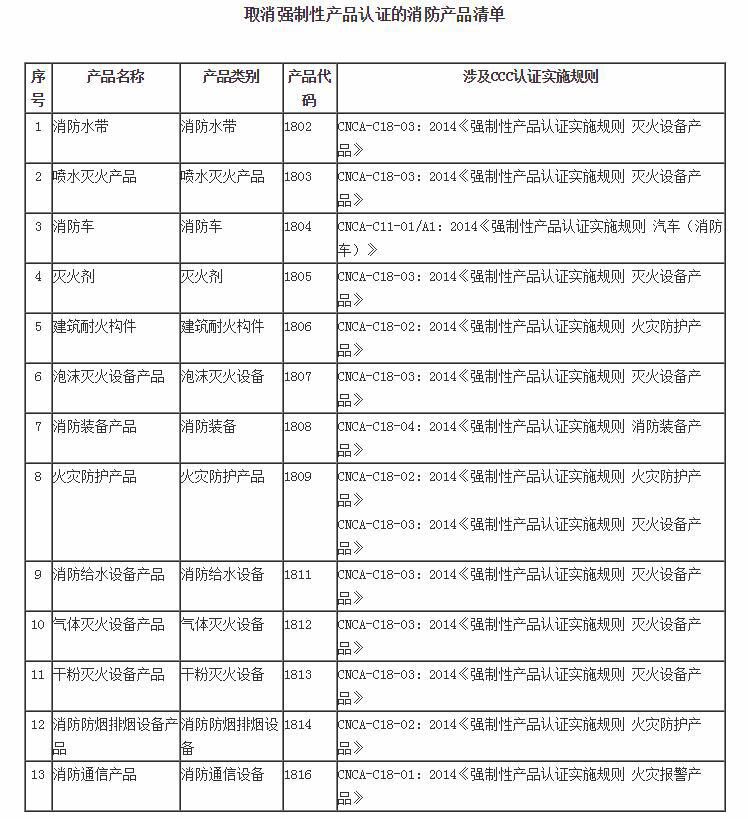 附件二:取消3C強制性產品認證的消防產品清單