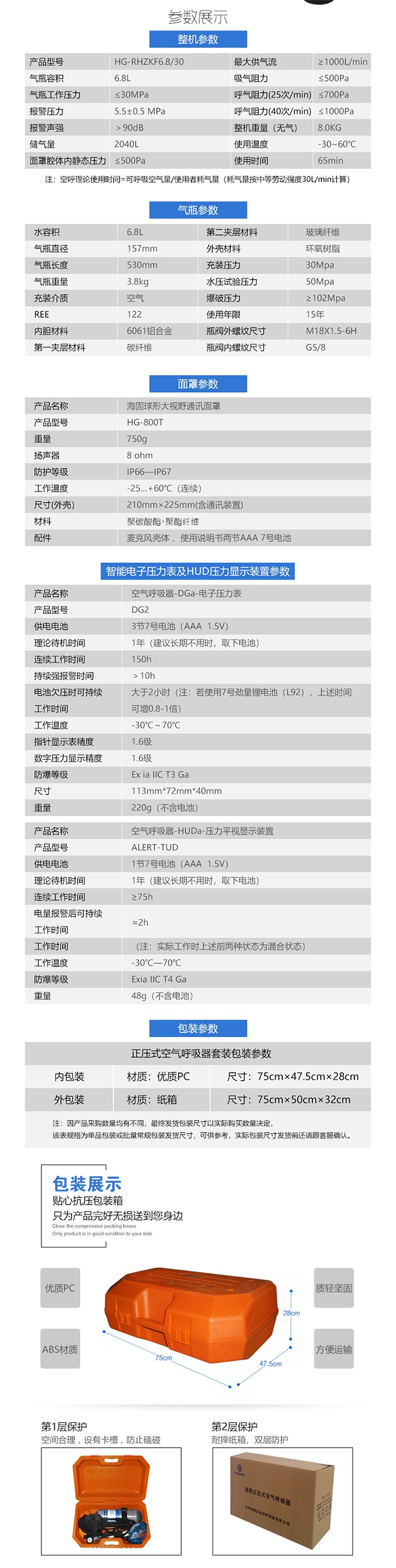 海固RHZKF6.8/30 正壓式空氣呼吸器 (800T面罩+HUD)適用于救援、石油燃氣、化工生產,礦山開采、冶金、農業生產、輕工制造、電力、船舶等行業。