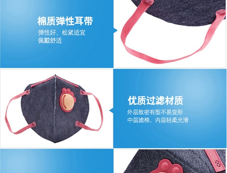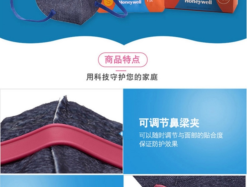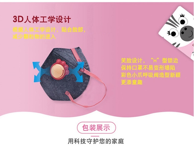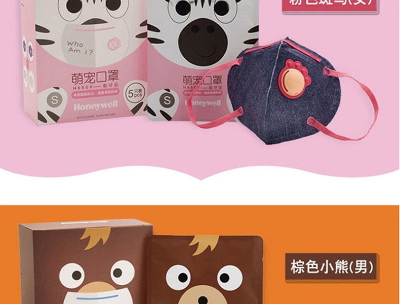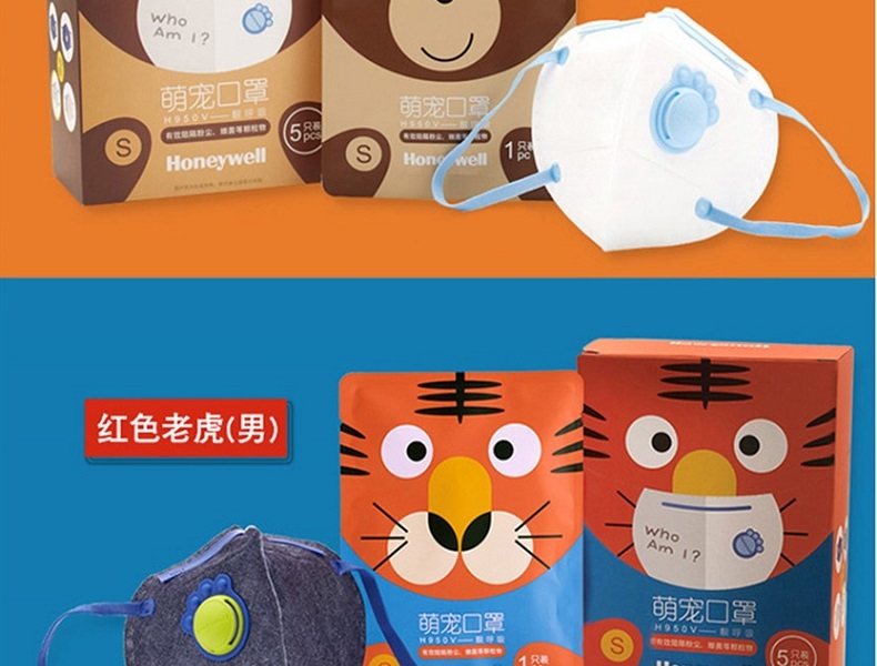 霍尼韋爾D7051SV-B10萌寵男孩防塵口罩可調節鼻梁夾;棉質彈性耳帶;優質過濾材質;高性能呼吸閥;內置海綿鼻墊。