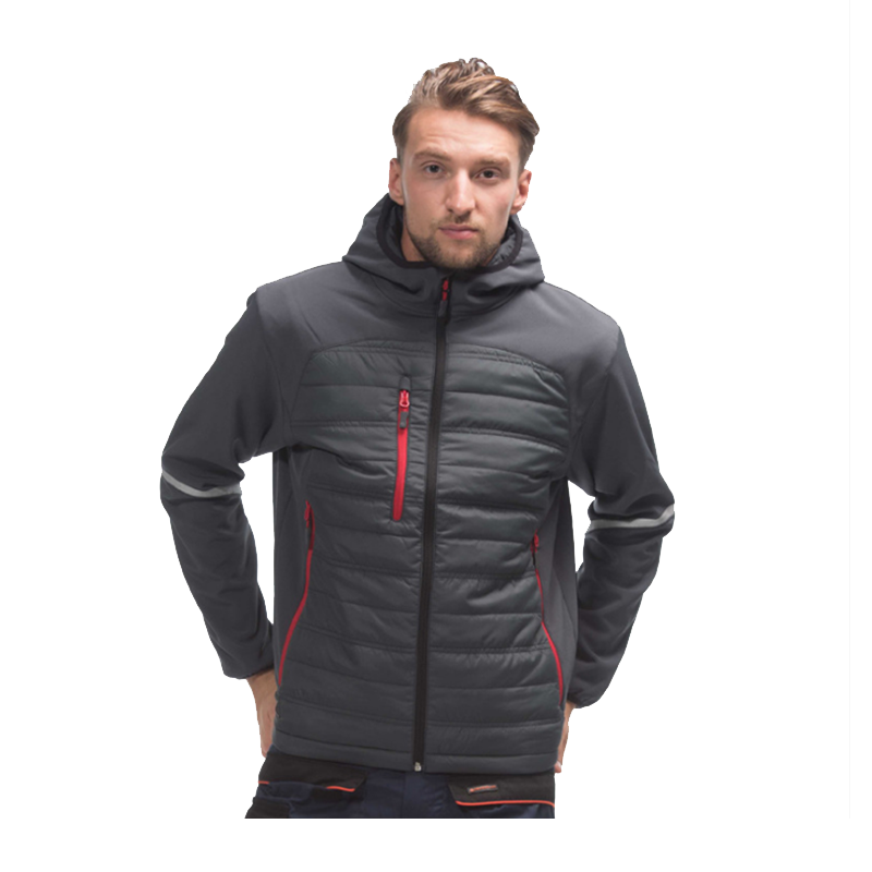 企業登錄代爾塔聚酯/彈性纖維雙材料“軟殼”夾克防寒服,拉鏈收緊;防風前片門襟,袖口斜紋收緊.