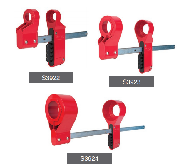 瑪斯特S3922法蘭盲板鎖具,小號,使用螺母直徑19mm-28.7mm, 管道直徑12.7-76.2mm,法蘭厚度38.1-143.3mm。